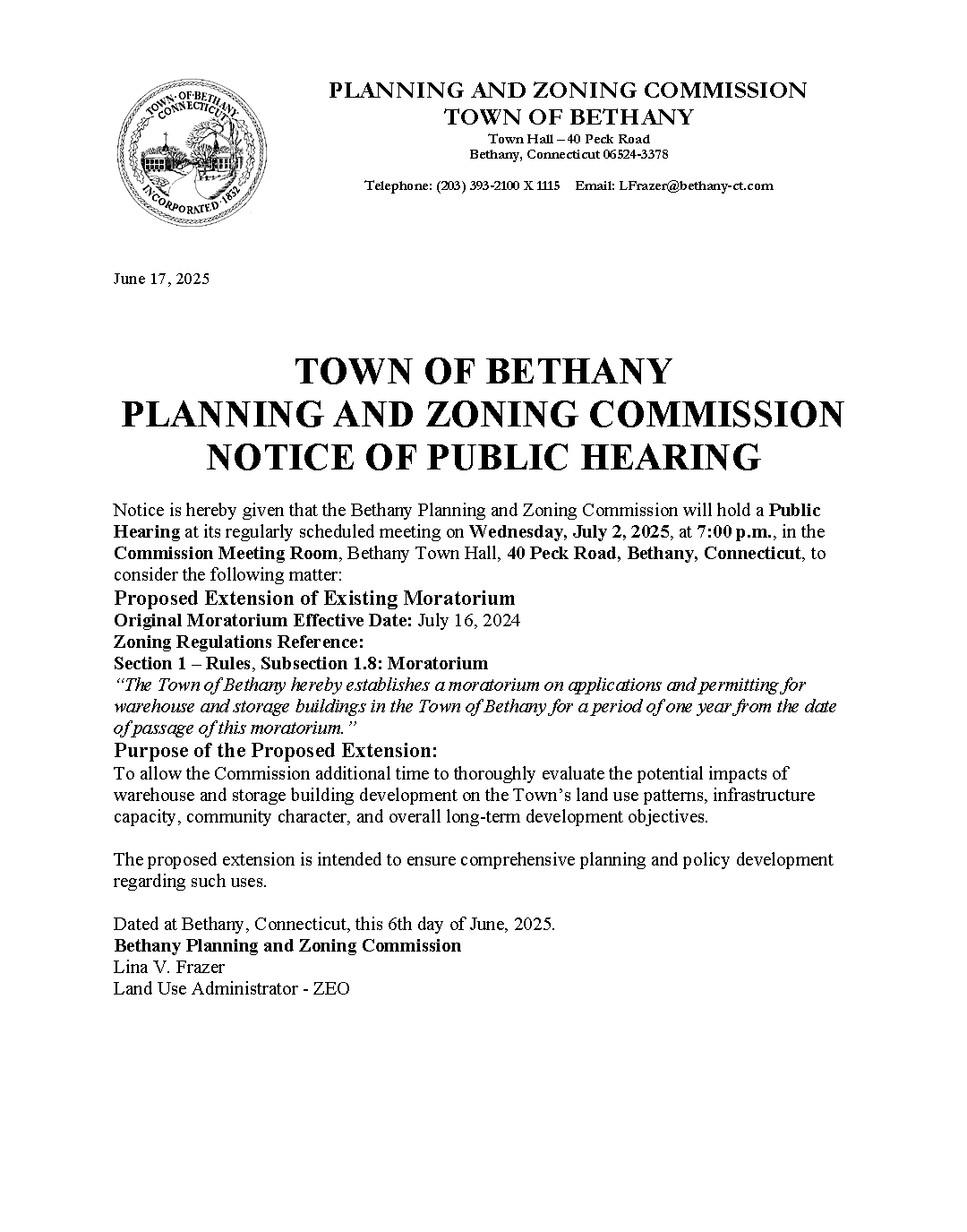 6/17/2025 - Public Hearing Notice - Planning & Zoning - Moratorium Extention 7/2/2025