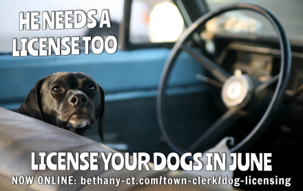 Per Connecticut Law, all dogs 6 months and older must be licensed with the Town Clerk's Office during the month of June. The fee for licensing is $19 for unaltered Male or Female dogs and $8 for Spayed or Neutered dogs. There is a $1 late fee added each month for applications received after June 30th. Proof of rabies vaccination is required when licensing your dog. If we don't already have your dog on record, proof of spay or neuter is also needed.